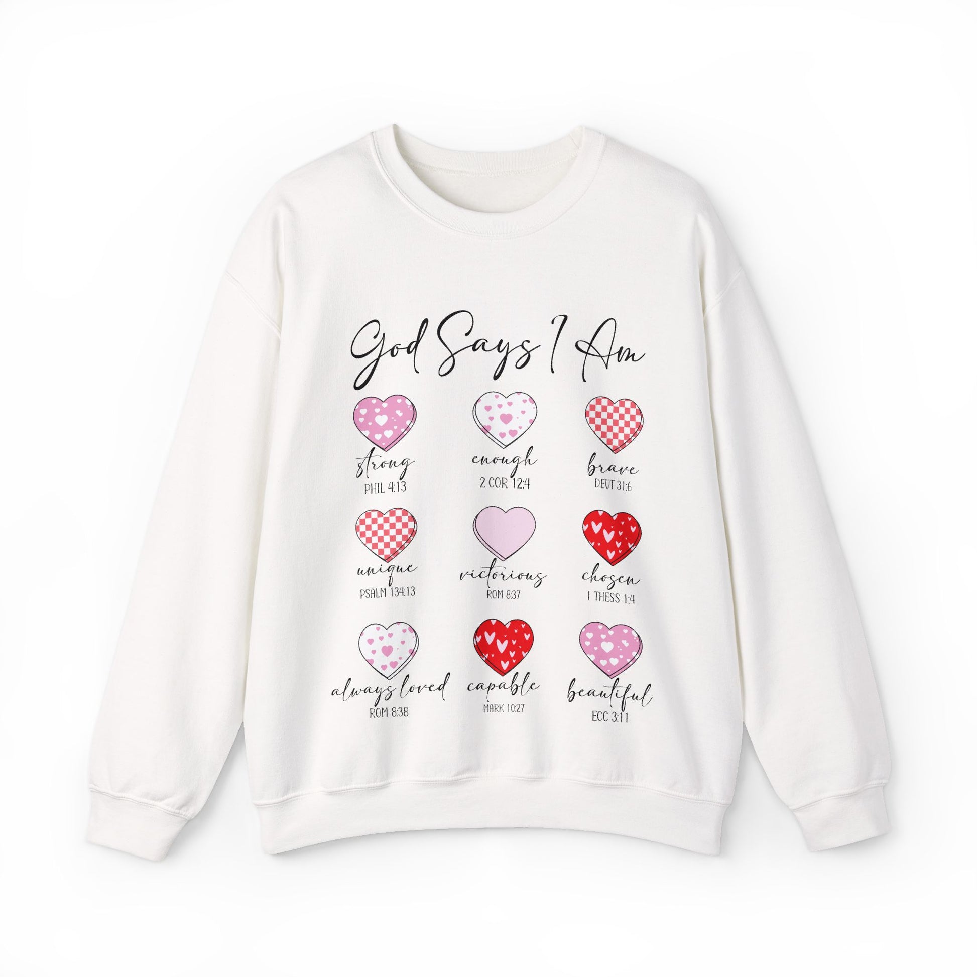 God Says I Am — Inspirational Christian Valentine's Sweatshirt
